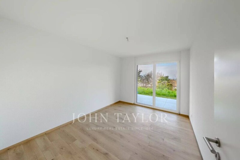 Rare à for sale New promotion "PPE les Oliviers" - Magnificent ground-floor apartment in a new 4-unit residence - Dominant location with beautiful views of the lake and surrounding area - Large 37m2 terrace and private 100m2 garden. - Thanks to its large bay windows and orientation, you'll enjoy sunshine all day long. - You'll enjoy an attractive kitchen opening onto the living room, as well as 3 bedrooms and two bathrooms. - 2 outdoor parking spaces and a cellar complete this property (CHF 50,000 extra). - This property can be sold to foreign non-residents as a second home. -Possibility of linking this lot with the apartment on the upper floor to create 1 magnificent, spacious apartment.