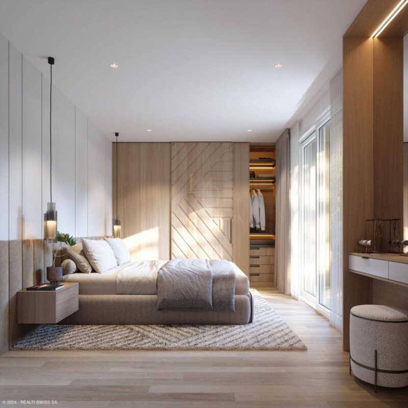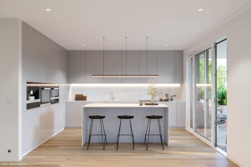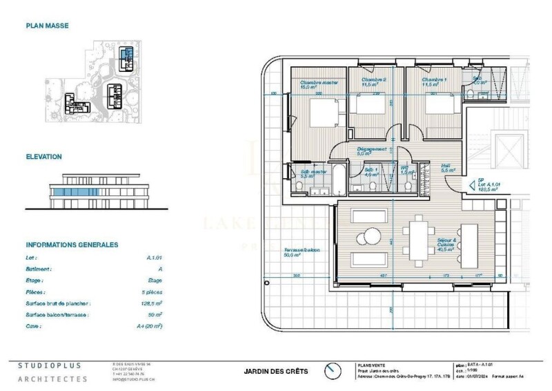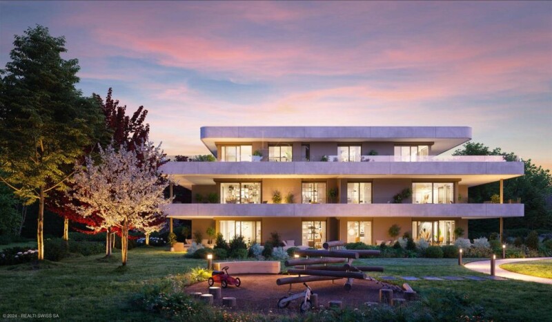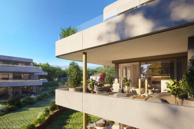 WEBSITE - PRESENTATION AND LOCATION The "Jardin des Crêts" Residence is located in the residential district of Grand-Saconnex. Located on the right bank of Geneva, in the heart of International Geneva, close to missions and embassies, discover this new luxury residence inviting you to reconnect with nature, in an exceptional environment with a park of more than 5,000 m2, low density (coefficient 0.3). With its position at the top of a ridge and among century-old trees, you can enjoy the peace and quiet while being in close proximity to amenities such as schools, shops and public transport (a one-minute walk from the Grand-Saconnex John Knox bus stop). Geneva International Airport, the lake and the city center are just a few minutes away by car. ARCHITECTURE & APARTMENTS BETWEEN 146.5 M2 AND 227 M2 WEIGHTED The architectural expression, in cohesion with nature, is distinguished by facades clad in natural and mineral stone as well as by glass railings overlooking the greenery. The materials have been carefully chosen and each building meets a very high energy performance standard (Minergie THPE), with heat production provided by air-water heat pumps and a roof fully equipped with photovoltaic panels. The project includes 2 buildings of 5 apartments each (A & B) as well as a shared underground parking. Each of the apartments enjoys very beautiful light and a splendid and vast covered terrace inviting residents to make the most of outdoor life, while being sheltered from the view of neighboring homes. Buildings A & B are distributed as follows: Ground floor: 2 x 5 rooms First floor: 2 x 5 rooms Attic: 1 x 6 rooms The ground floor apartments benefit from a magnificent 100 m2 garden facing S/W, in addition to a covered terrace. Each apartment benefits from an annex, a large cellar (20 m2) as well as two indoor parking spaces (included in the sale price). Building permit in force - Delivery in September 2026.