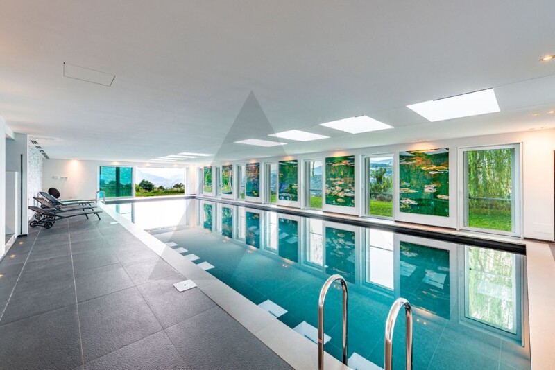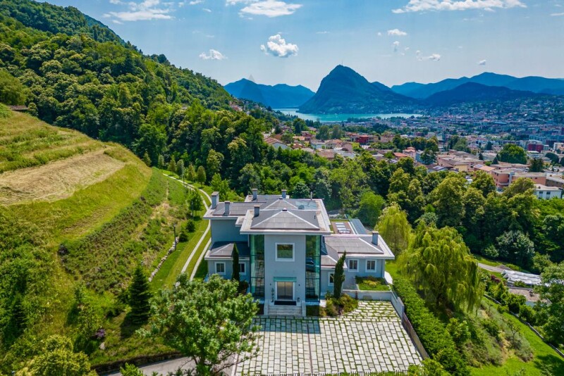 EXCLUSIVE PROPERTY WITH LARGE LAND The property is set on a large plot of approximately 62,000 m² in Lugano, in a dominant and secluded position with magnificent open views of the lake and surrounding area. Just 5 km from Lugano, it offers a serene environment immersed in nature with easy access to city conveniences via public transport. Innovative technologies, including a video surveillance system, home automation, heating and cooling systems, and solar collectors, ensure maximum ease of use and security. The property boasts spacious, bright living areas with elegant, high-quality finishes. The luxurious combination of marble and solid oak wood creates a meticulously crafted and cozy interior, complemented by fireplaces and expansive spaces that exude refinement. The villa's interiors are grand, with impressive room heights: the entrance hall reaches 10 m, and the living room and bedrooms have ceilings rising from 3.30 to 4.70 m. Outdoor spaces, including the porch and terraces, are designed for maximum comfort and liveability, with a forecourt ample enough for numerous parking spaces. A wellness area enhances the property, featuring a large heated 18 m indoor pool, a Turkish bath, a wine cellar, and a cinema room, providing full enjoyment of your home.