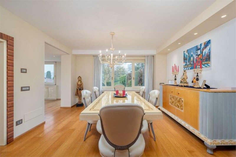 In Breganzona, a district of the city of Lugano, in a private position but at the same time close to the centre, we offer for sale a splendid villa with a large private garden. The house is located in a dominant position on a plot of approximately 920 m2, from which you can enjoy a splendid view of the surrounding area and Lake Muzzano. The villa boasts a living area of approximately 400 m2 and is arranged on 3 levels, as follows: - Ground floor: private apartment which includes kitchen, large living room, bedroom/study overlooking the garden, a double bedroom with custom-made wardrobes and bathroom en suite with sauna, a further bathroom with bathtub, laundry room, further bedrooms/study and internal access to the garage. - 1ST FLOOR: large living room, reading room, dining room and kitchen in a separate room, a service bathroom and a master bedroom with walk-in closet and en suite bathroom with shower. The rooms are very bright thanks to the windows which guarantee optimal lighting of all spaces. - 2ND FLOOR: sleeping area consisting of three master bedrooms, custom wardrobes and each with en suite bathroom, terraces and balconies. The property has a large private garden of approximately 250 m2 in which you can enjoy moments of pure relaxation together with the whole family. The solution, thanks to its characteristic layout, is in fact ideal for a large family looking for a private but comfortable space close to the city. Ample parking available in the garage and in the external square in front of the villa (there is the possibility of further extending the space in order to create additional parking spaces). The property guarantees maximum liveability thanks to the high-level finishes such as the parquet flooring and the resin bathrooms and the technologies set up here such as the underfloor heating and cooling system with heat pump, lighting and automatic irrigation for the garden.