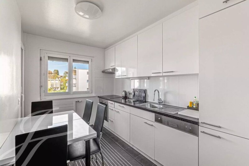 A JOHN TAYLOR EXCLUSIVITY! Beautiful 4.5-room apartment in a building with elevator, a stone's throw from the lakefront and close to all amenities. -Built in the 70s, the apartment was carefully renovated in 2015 and is in very good condition. -You'll enjoy a beautiful living room with fireplace and semi-open kitchen. -Balcony (véranda) of +9m2 so you can enjoy the good weather. -A total of 3 bedrooms and 1 large shower room + guest wc. -1 cellar + 1 galetas -1 internal parking space (CHF 30,000.-) -This building offers different owners a fitness area with sauna and a room with kitchen where you can enjoy good times with your friends.