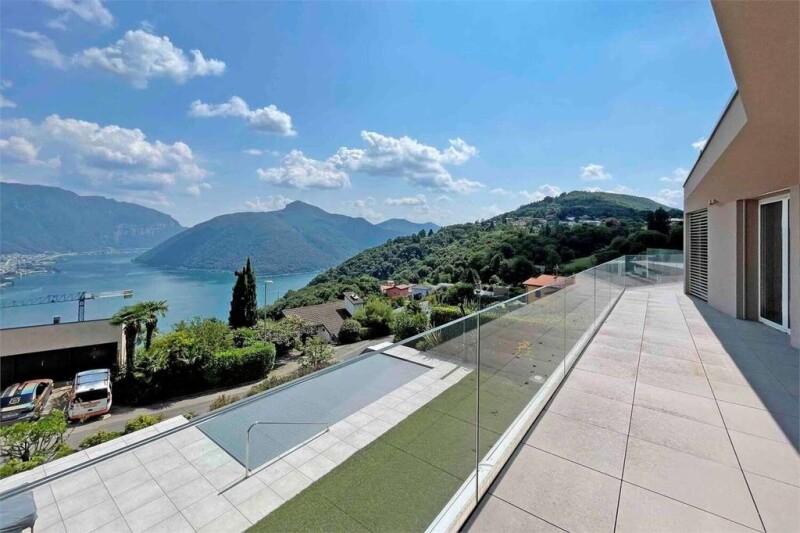 Carona - We offer in a residential area overlooking Lake Lugano, this wonderful penthouse of 255 square meters. in an elegant new building. The bright and well-distributed apartment offers high standing finishes and attention to elegance in the choice of details. The apartment is equipped with air conditioning, lift, a wonderful living area with open design kitchen, a master bedroom with en-suite bathroom and walk-in closet, three double bedrooms, a second bathroom with big size shower, a laundry area, a technical area; Enchanting is the wonderful terrace that runs throughout the property and allows you to enjoy moments of relaxation with a breathtaking view, to conclude the property we have two parking spaces in the garage, an outdoor parking space and a large cellar. The apartment is suitable for families who want a quiet and welcoming environment, surrounded by greenery. Carola Ballerini - 0041 78 345 78 34.