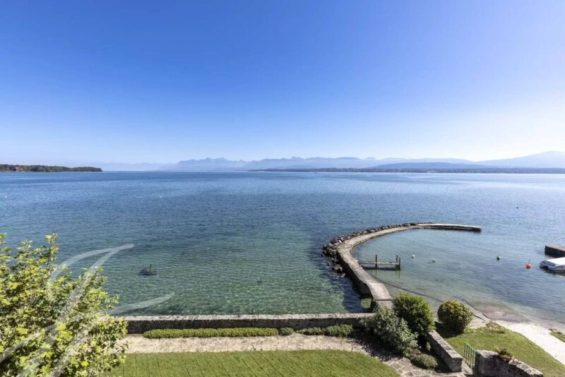 Magnificent lakeside residence in the commune of Nyon, set on a 1920 m² plot, offering 440 m² of living space on three levels. A sublime terrace, spanning the entire width of the house, offers a special dimension to the integral view of the lake and garden. The first floor features three living rooms, one with a fireplace and direct access to the outdoors, a dining room and a fully equipped kitchen with a pantry. The kitchen gives direct access to the garden with its magnificent swimming pool. Upstairs, you'll find three bedrooms, an office and several bathrooms. The attic is also suitable for conversion and includes a large living area with open kitchen and terrace, as well as two bedrooms with en-suite bathrooms and storage space. The spacious basement houses several cellars, a sauna, a pool room, a technical room, a laundry room and a wine cellar. The house is in need of renovation to bring it up to the standard befitting this type of unique property. Two covered and four outdoor parking spaces, a private harbor for up to six boats and an outdoor swimming pool complete this exceptional property. Geneva airport can be reached in 25 minutes by car from this property, while downtown Nyon is just a 5-minute drive away.