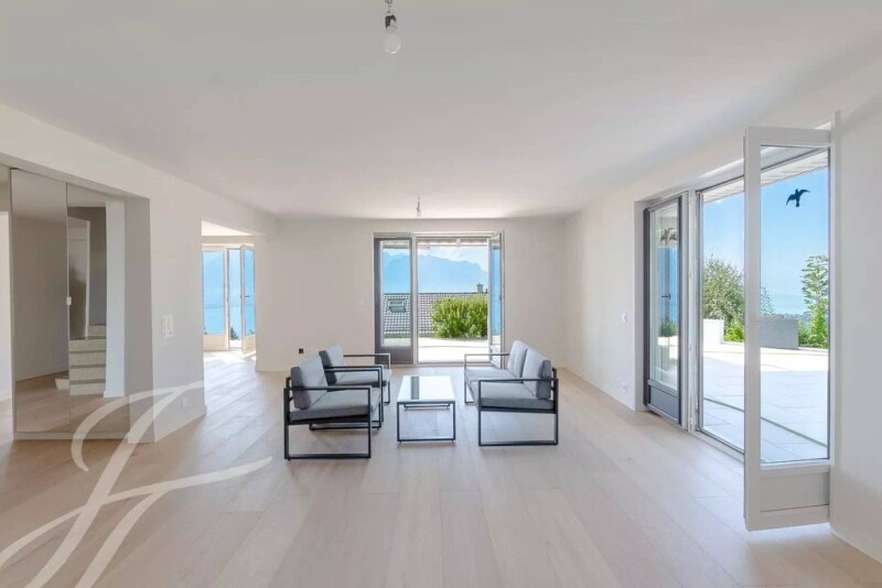 -Situated in a dominant position in a quiet, residential area just a few minutes from the heart of Montreux (Chernex). -It offers magnificent views of the lake, mountains and surrounding region. - This house was entirely renovated in 2023 using high-quality materials and exquisite attention to detail, offering a stylish, contemporary interior. -Perfectly oriented, you'll enjoy plenty of natural light throughout the day. -Spacious, bright living rooms with different accents and a terrace offering magnificent panoramic views. -A total of 3 bedrooms and 3 shower rooms + 1 study room (additional bedroom). -Large basement with various storage rooms. -IMPORTANT: the pellet + solar panel heating system gives this villa excellent energy efficiency. -A covered area for 3 vehicles completes this property! -This property can be sold to foreign non-residents as a second home.